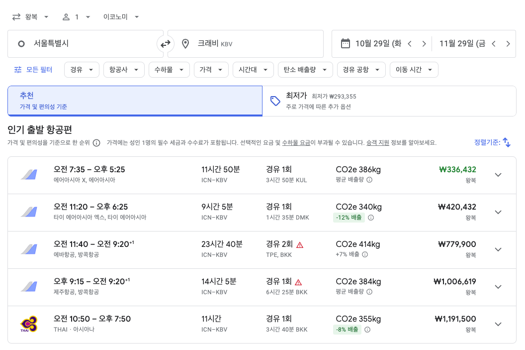 한국에서 크라비 가는 방법