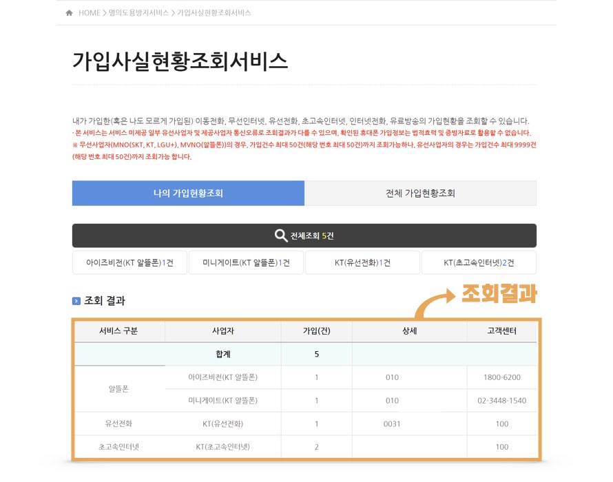 알뜰폰 통신사 외에도 본인이 가입한 모든 통신사 내역이 조회됩니다.