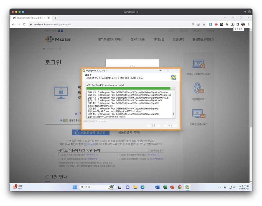 4. 보안프로그램 미설치시 'AnySign_Installer.exe' 자동 다운로드 됨.