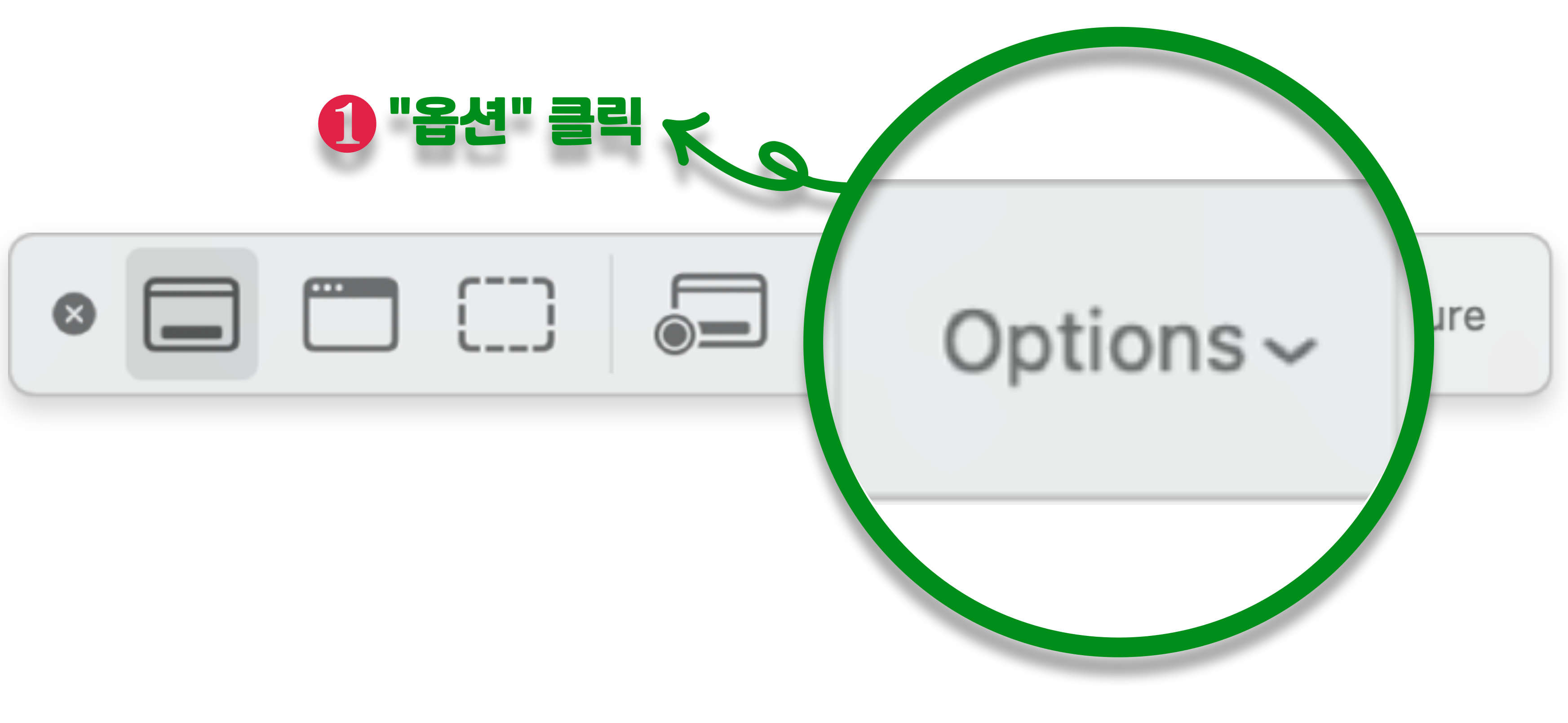 코맨드 + 시프트 + 5 번키를 동시에 누르면, 아래와 같이 "스크린캡쳐 앱 콘트롤러 박스" 가 나타난다.