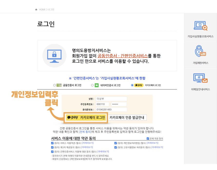 저는 카톡페이 인증서비스를 이용하여 로그인 했습니다.
