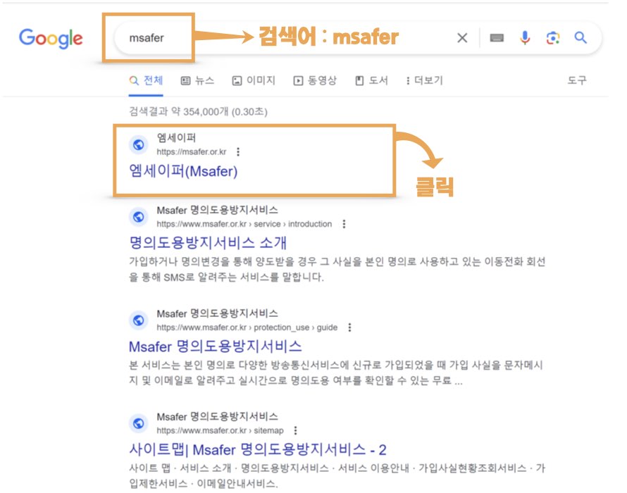 네이버, 구글에서 아래와 같이 검색어 "msafer" 검색하신 다음 엠세이퍼 사이트로 접속하세요.
