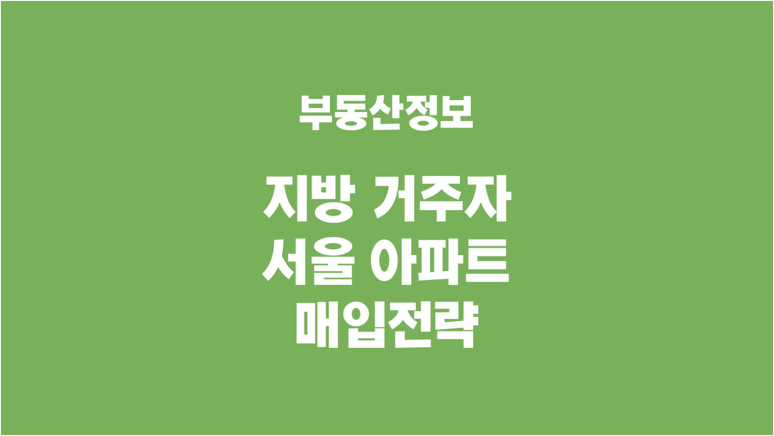 지방 거주자가 서울 아파트를 성공적으로 매입하기 위한 전략